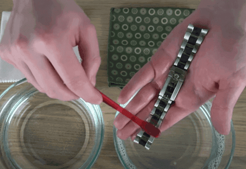 You need to prepare a small bowl of room temperature water, and then add appropriate soap or add some rubbing alcohol for disinfection. The removed watchband is then soaked in water. As for how long to soak it depends on your watchband dirty degree. It can be as short as 30 minutes or as long as an hour.