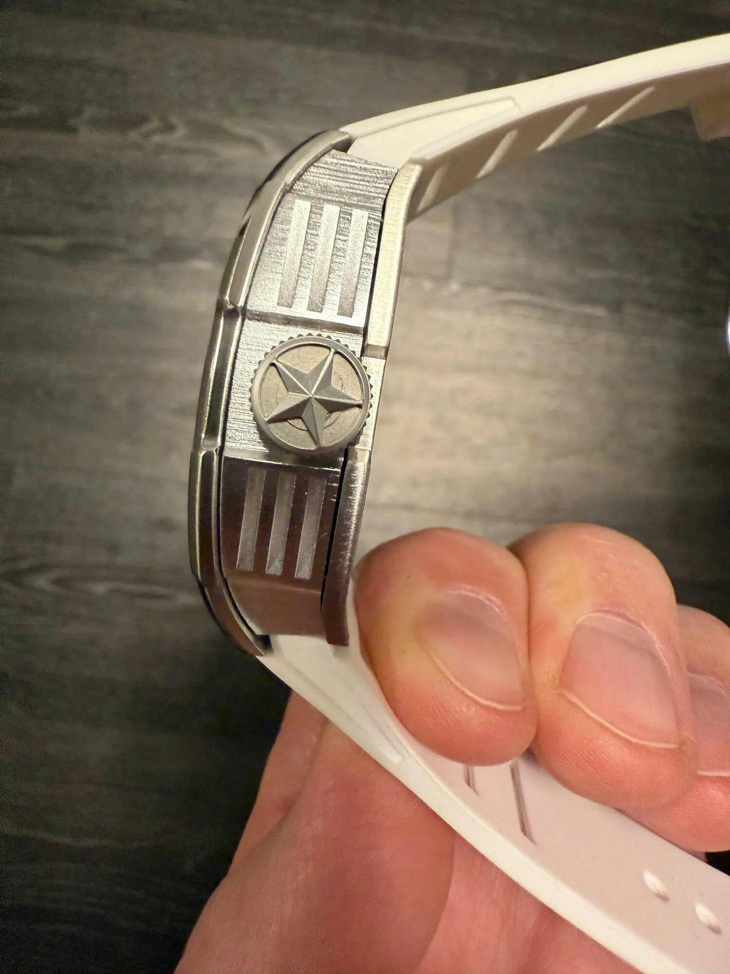 Fluorine rubber strap with matte stainless steel buckle