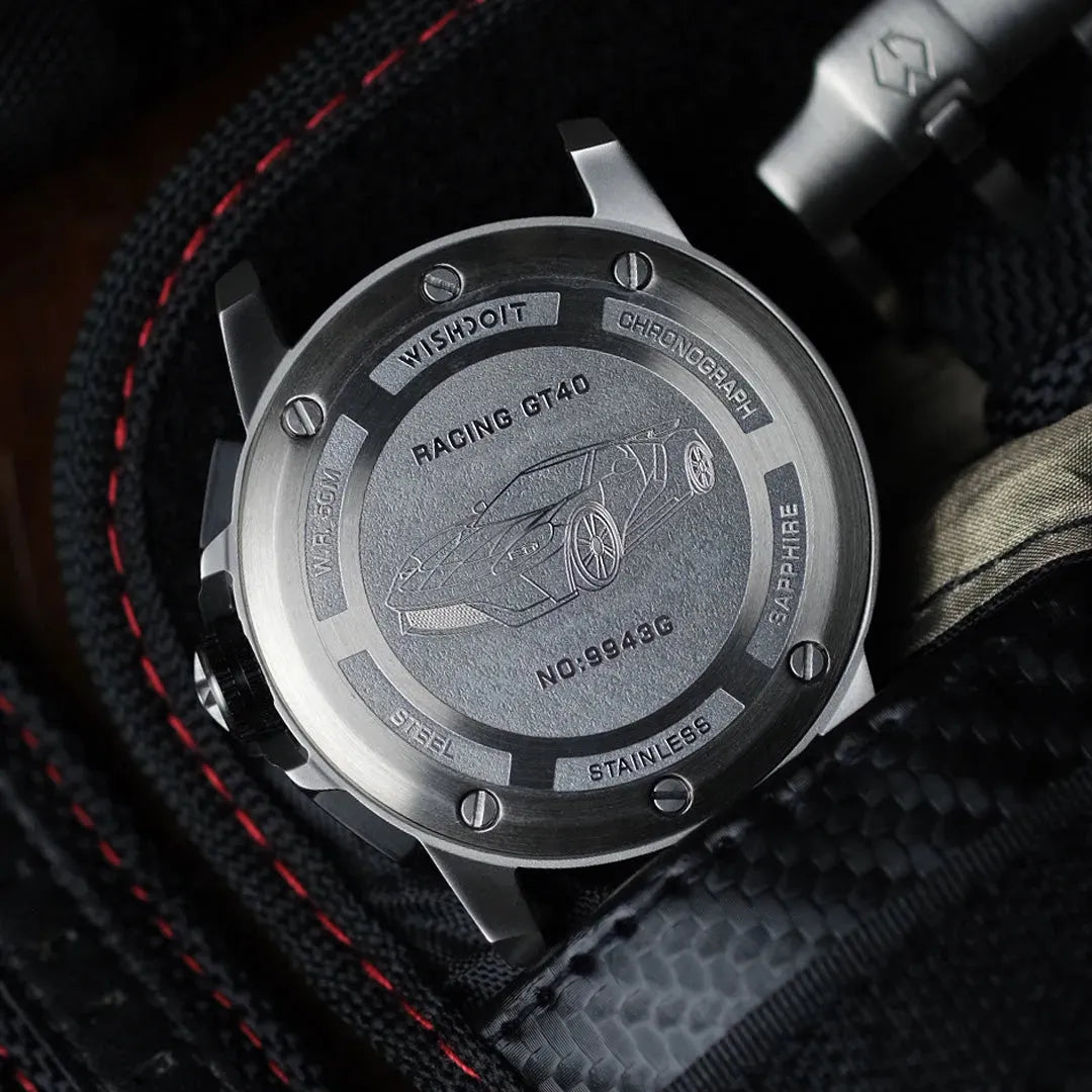 The GT40 Chronograph was born from the golden era of motorsports—its round, aerodynamic case and multi-layered dial echo the speed, adrenaline, and engineering mastery of iconic race cars. Designed for those who live with purpose and precision, this watch fuses competitive spirit with urban style, making a bold statement wherever it goes.