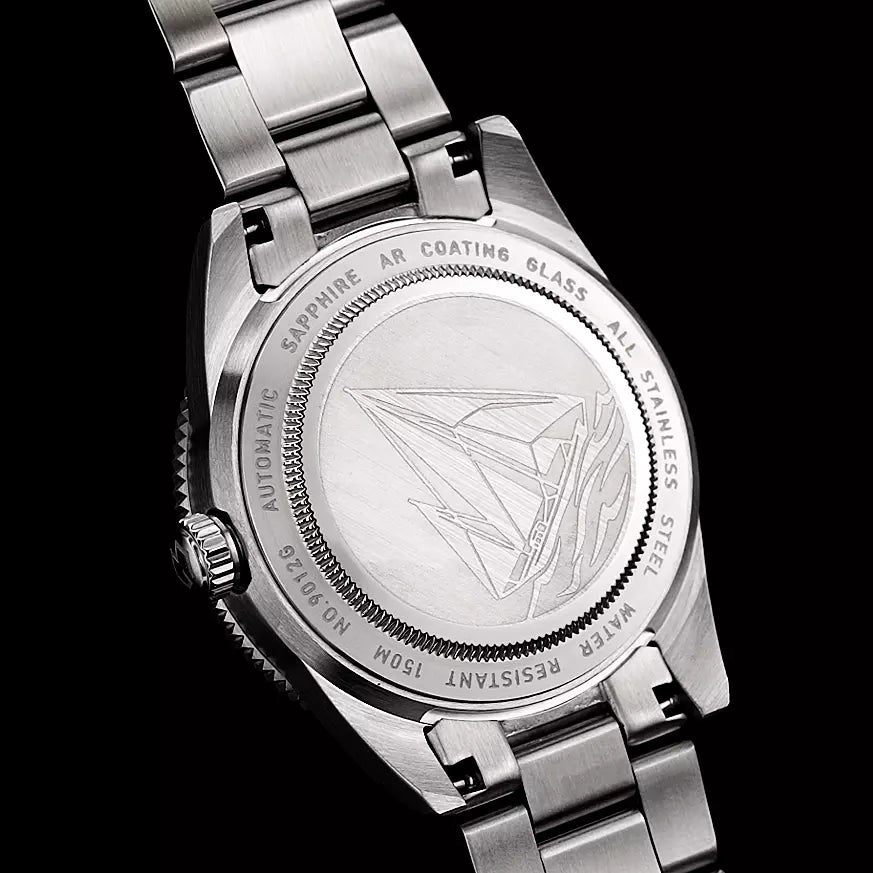 Powered by a reliable automatic mechanical Janpanese movement, this watch allows smooth, precise timekeeping without the need for batteries. The 150M (15ATM) waterproof rating ensures it withstands underwater exploration, and the luminous hands and markers provide visibility in low-light conditions.