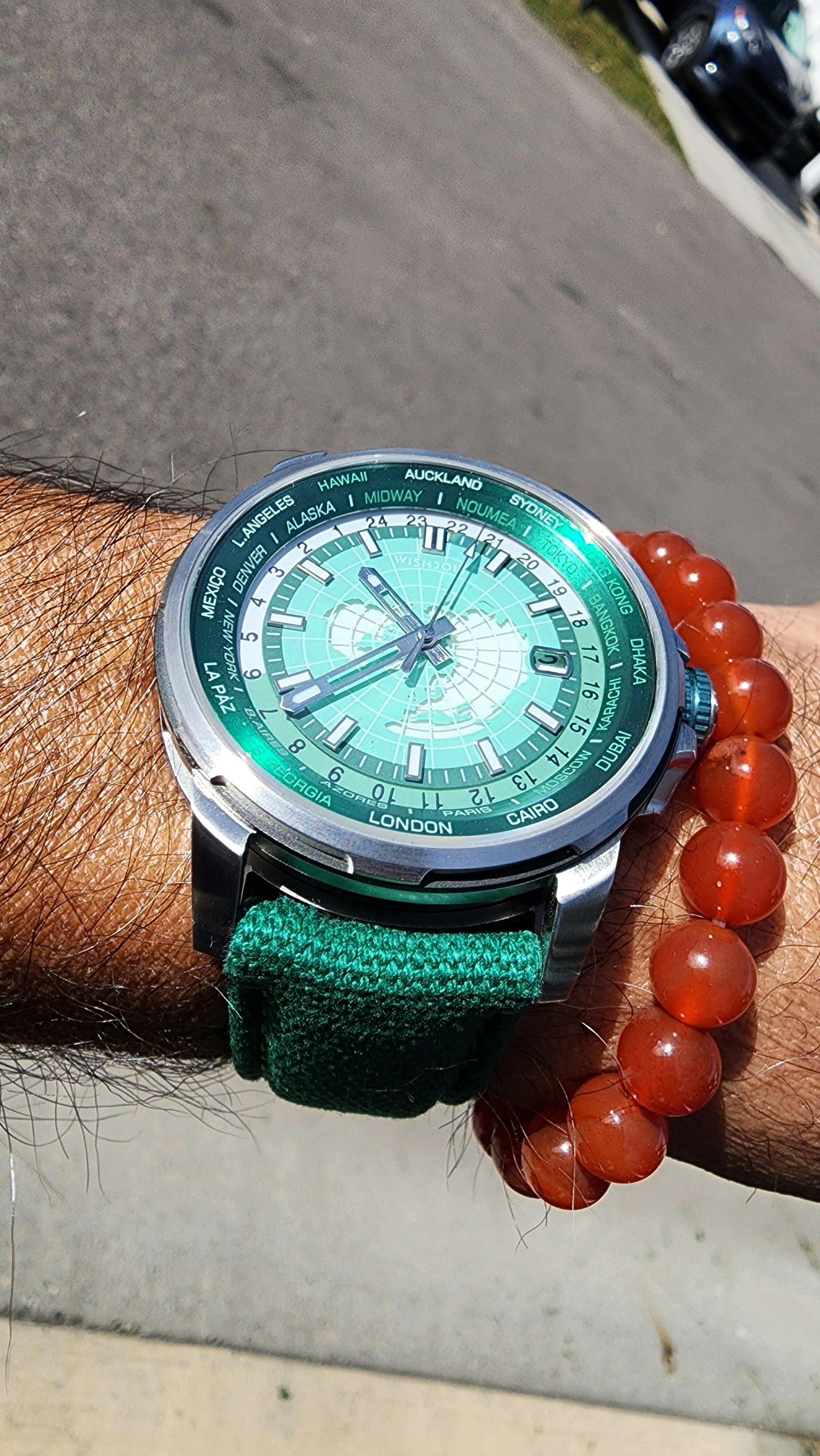 Thank you for your review of our green WISHDOIT Eternal Earth GMT watch! We are honored to offer you a high-quality, stylish timepiece at an affordable price. We hope it continues to bring you joy and become a highlight in your collection. Have a wonderful day!