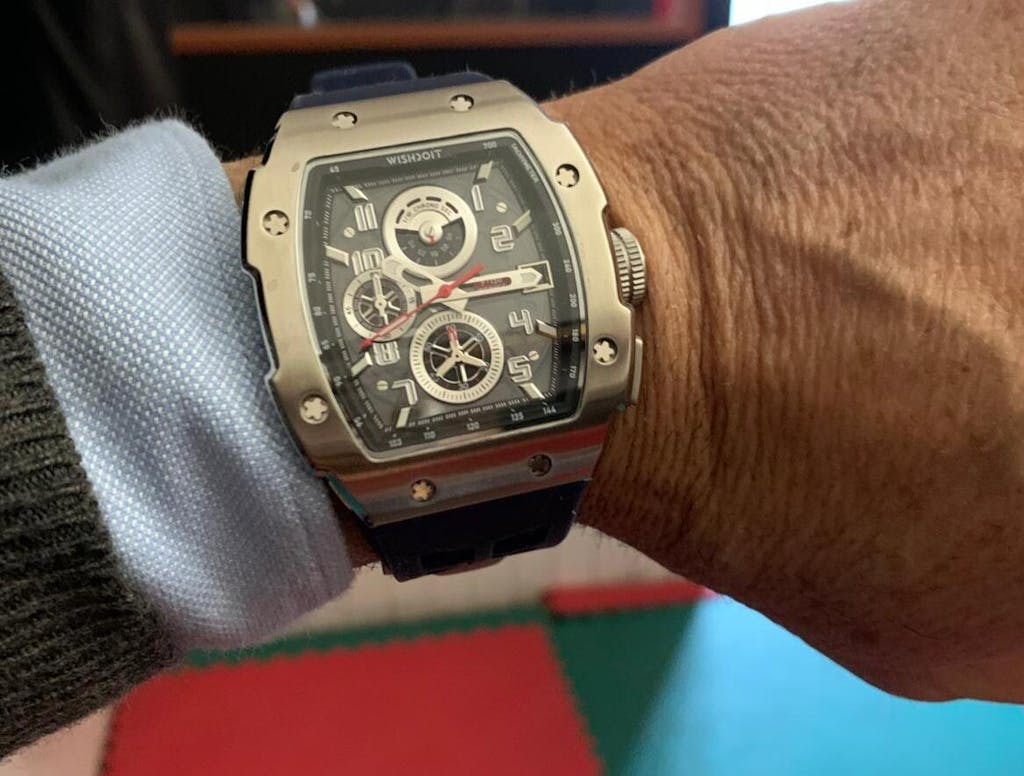 Wishdoit Watches Tonneau Affordable Best Men Chronograph F-150 Racing Watch | Fluorine Rubber Watch Strap|Silvery (Blue Strap)