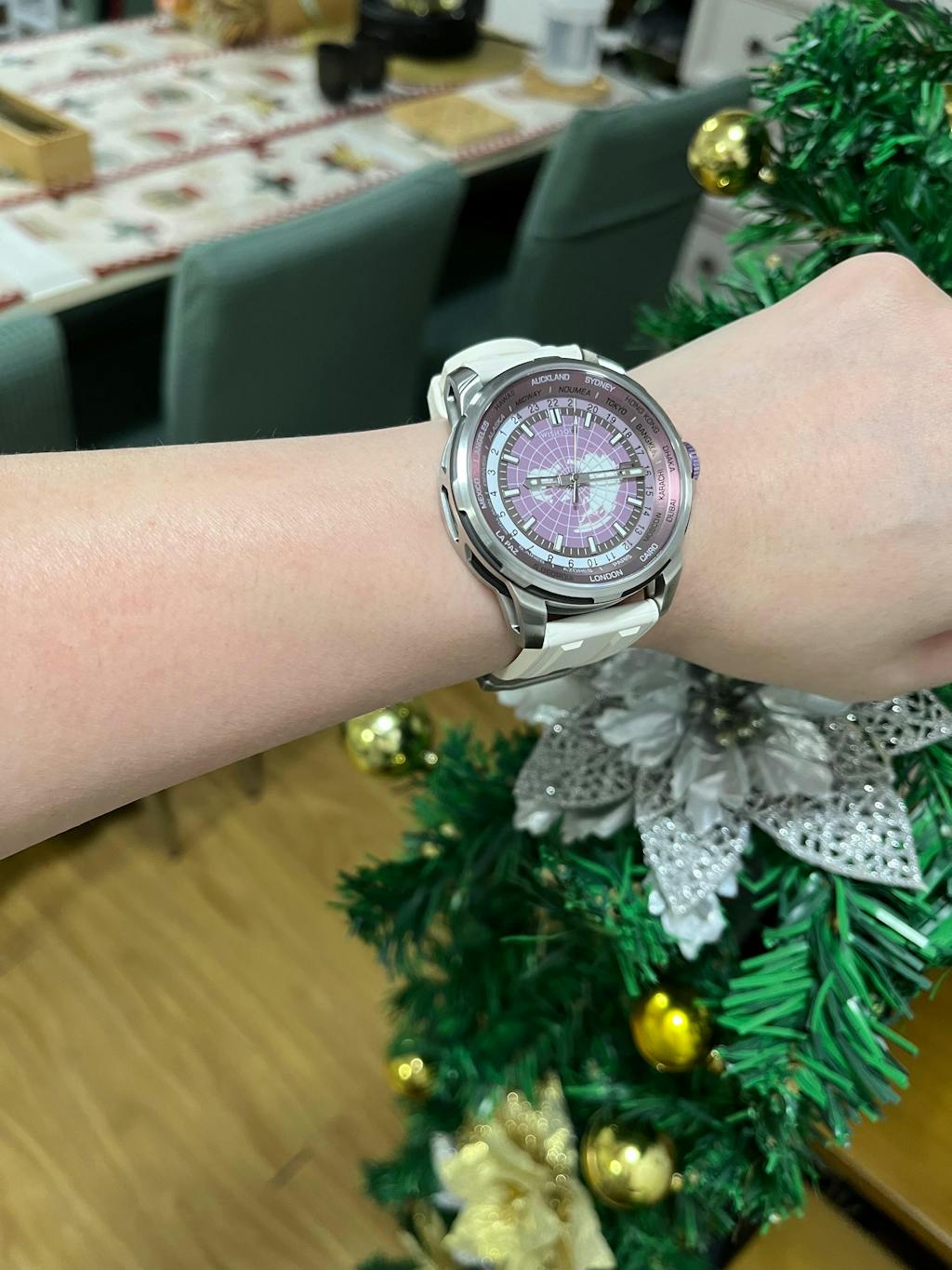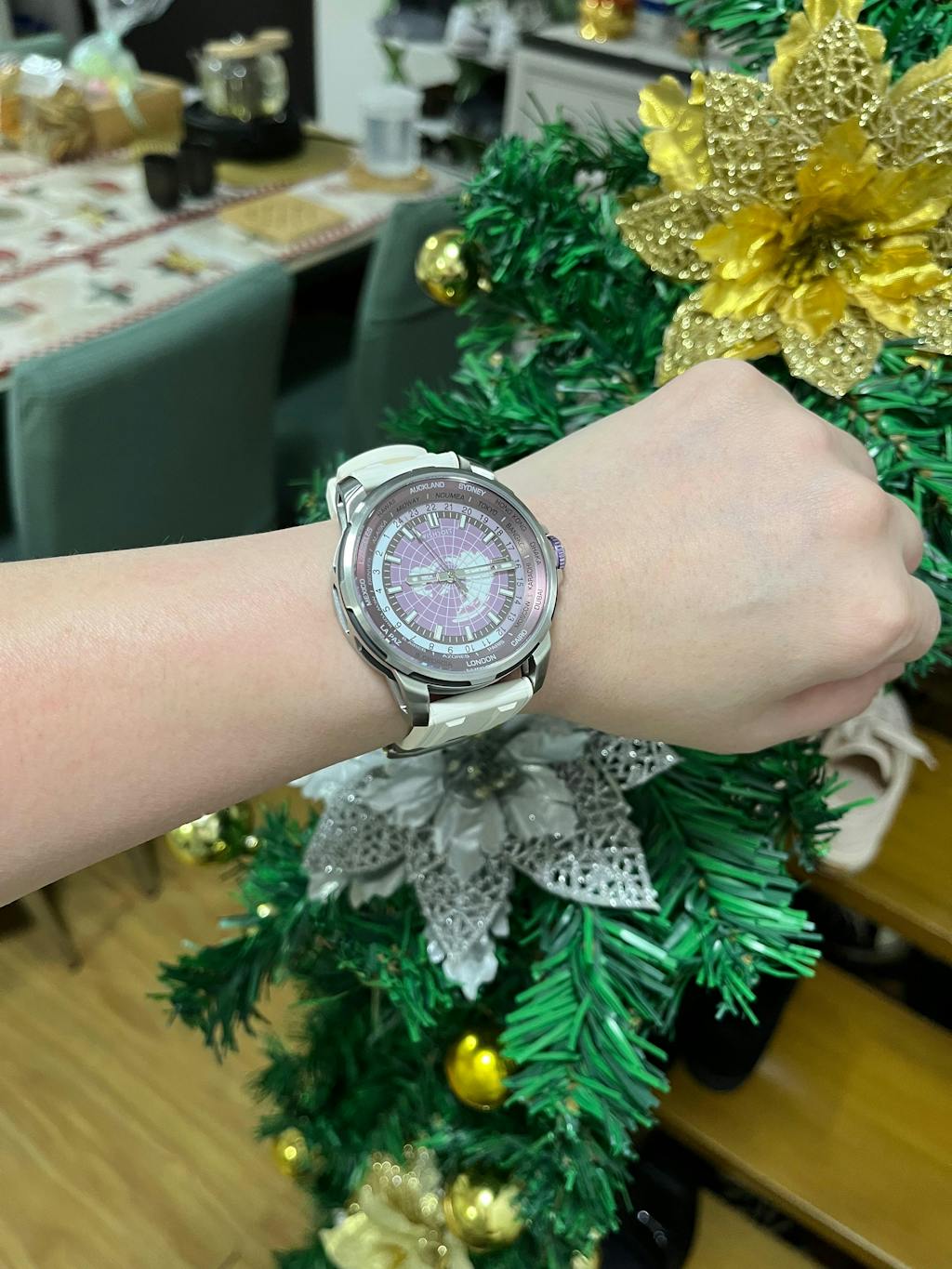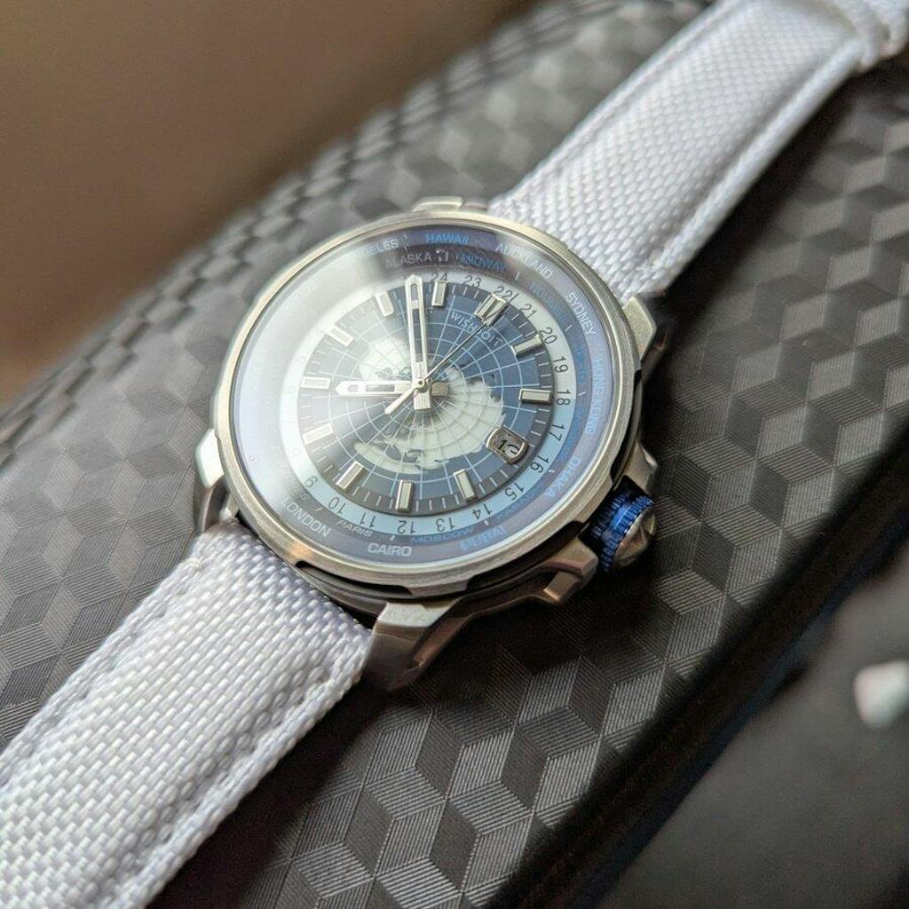 This watch features a case made from 316L stainless steel, which is 100% recycled. It also has a sapphire crystal top glass for excellent durability, and the strap is made of nylon and genuine leather.