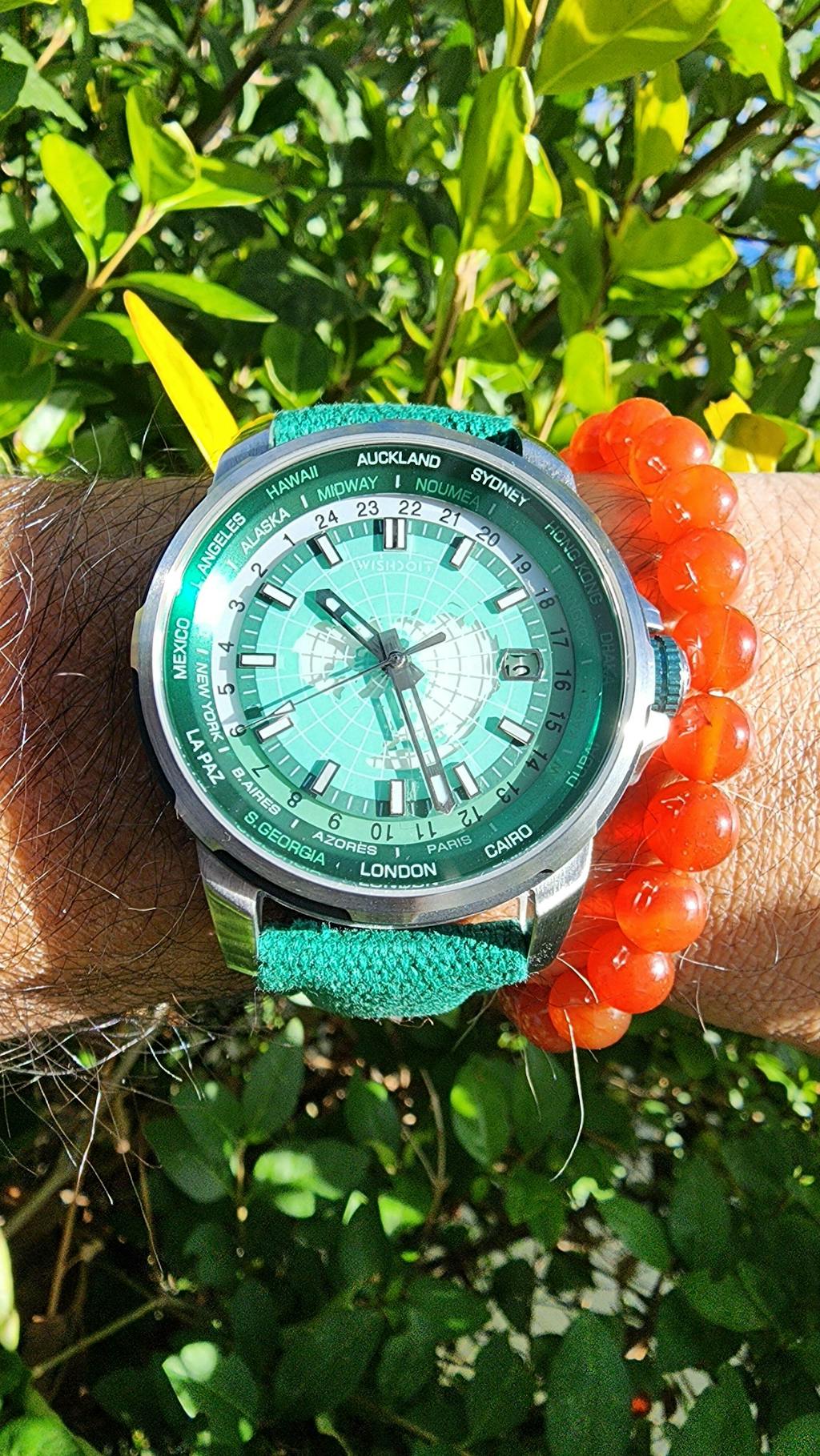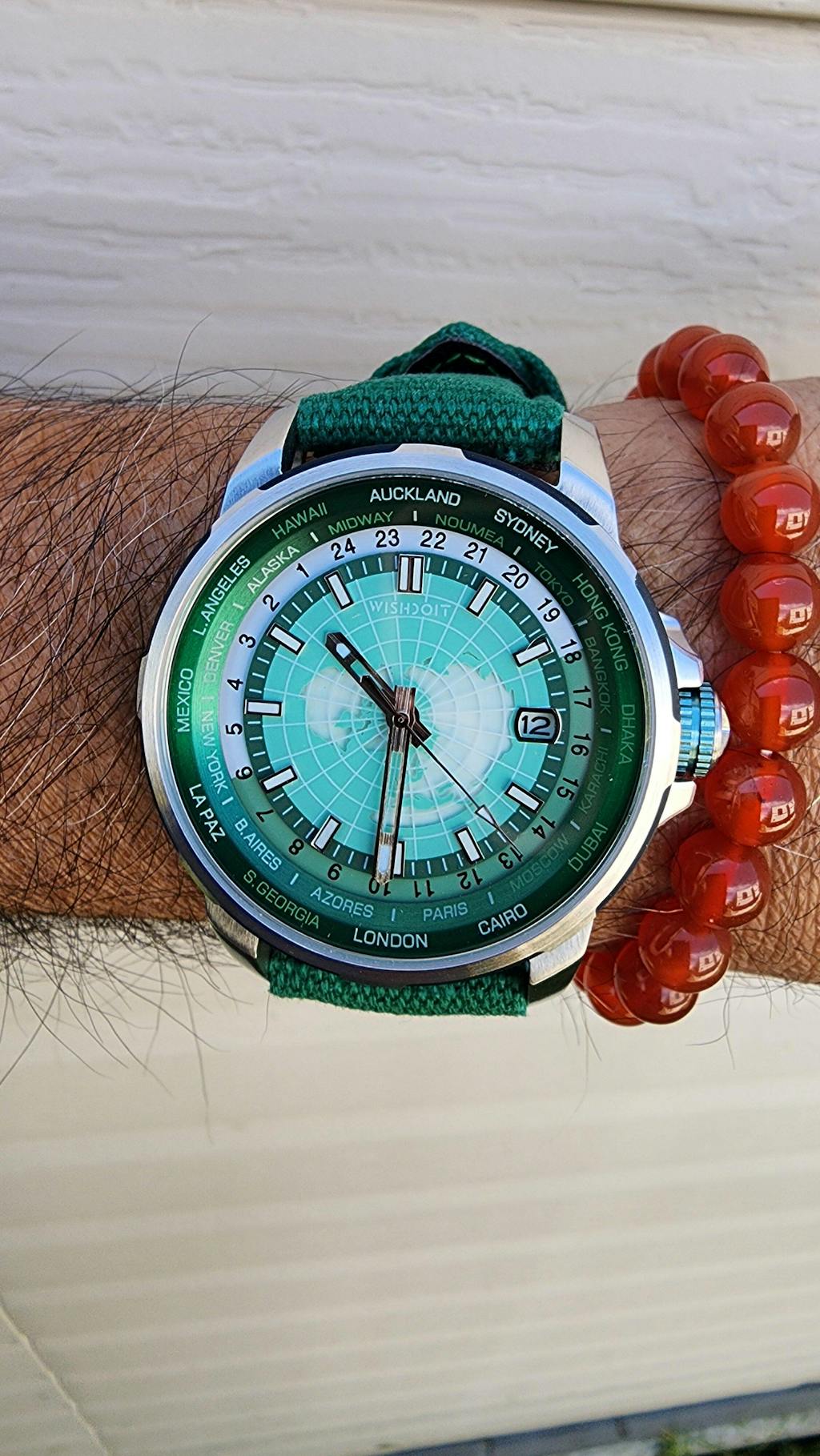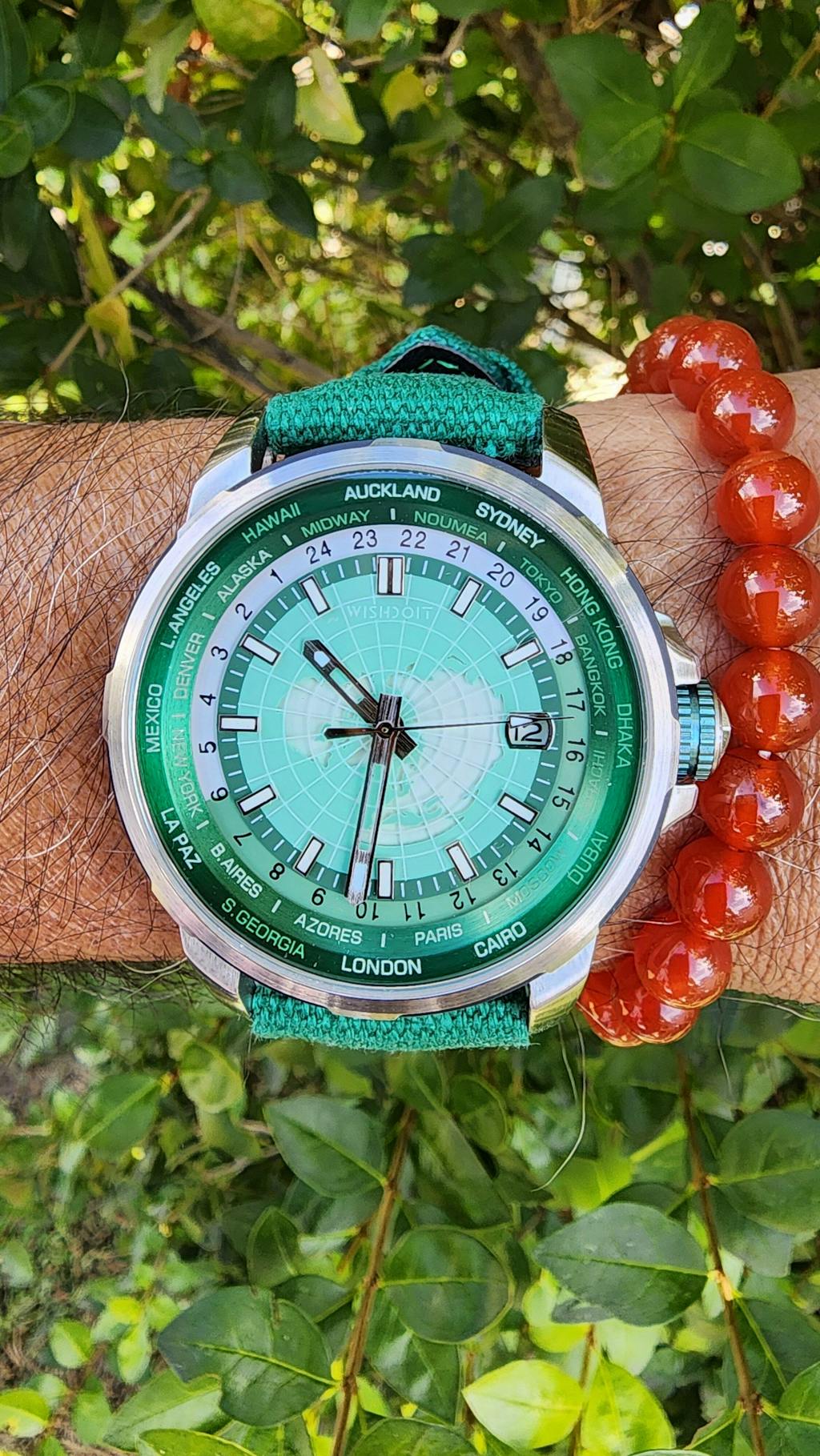 The Eternal Earth series is a tribute to the modern explorer—those who cross time zones not to escape, but to connect. At its heart is the reliable SEIKO NH34A GMT movement, chosen for its precision and enduring performance. The multilayer dial reveals a luminous map of the Northern Hemisphere, surrounded by a translucent minute ring and a city ring marking 24 global time zones. The striking green GMT hand symbolizes our shared responsibility to protect the Earth—always pointing forward, but never forgetting home.