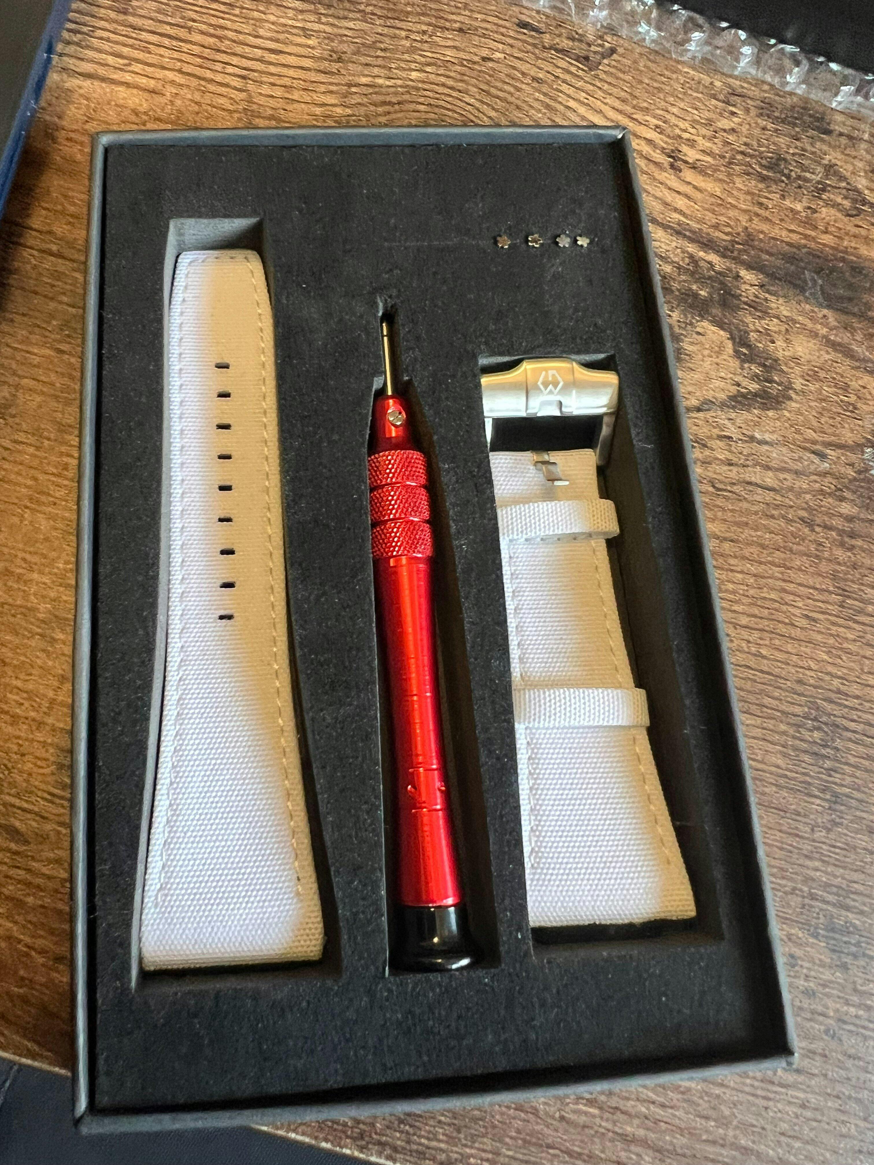 Great strap, changed the clasp myself to match the black watchcase. Easy to change with the supplied tool