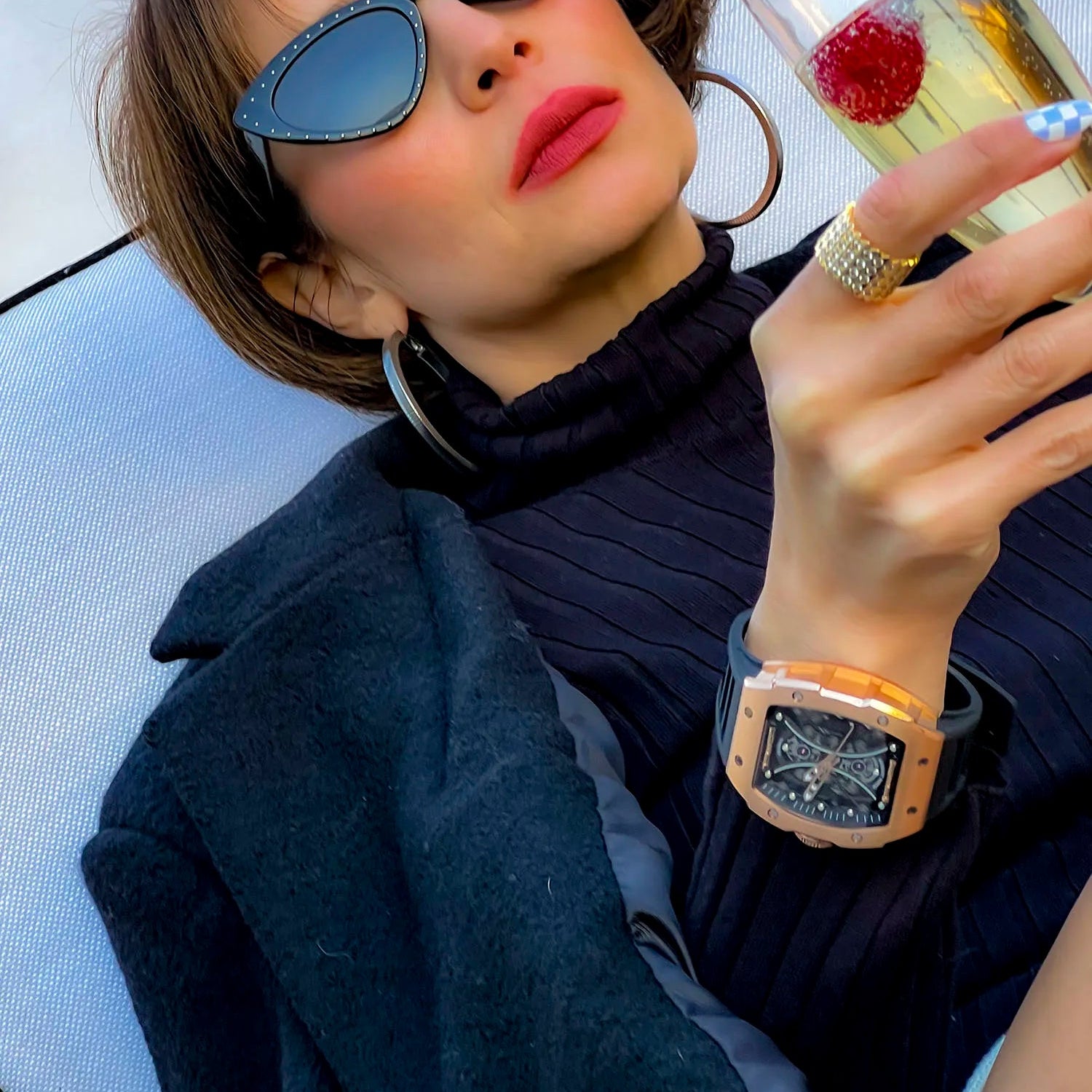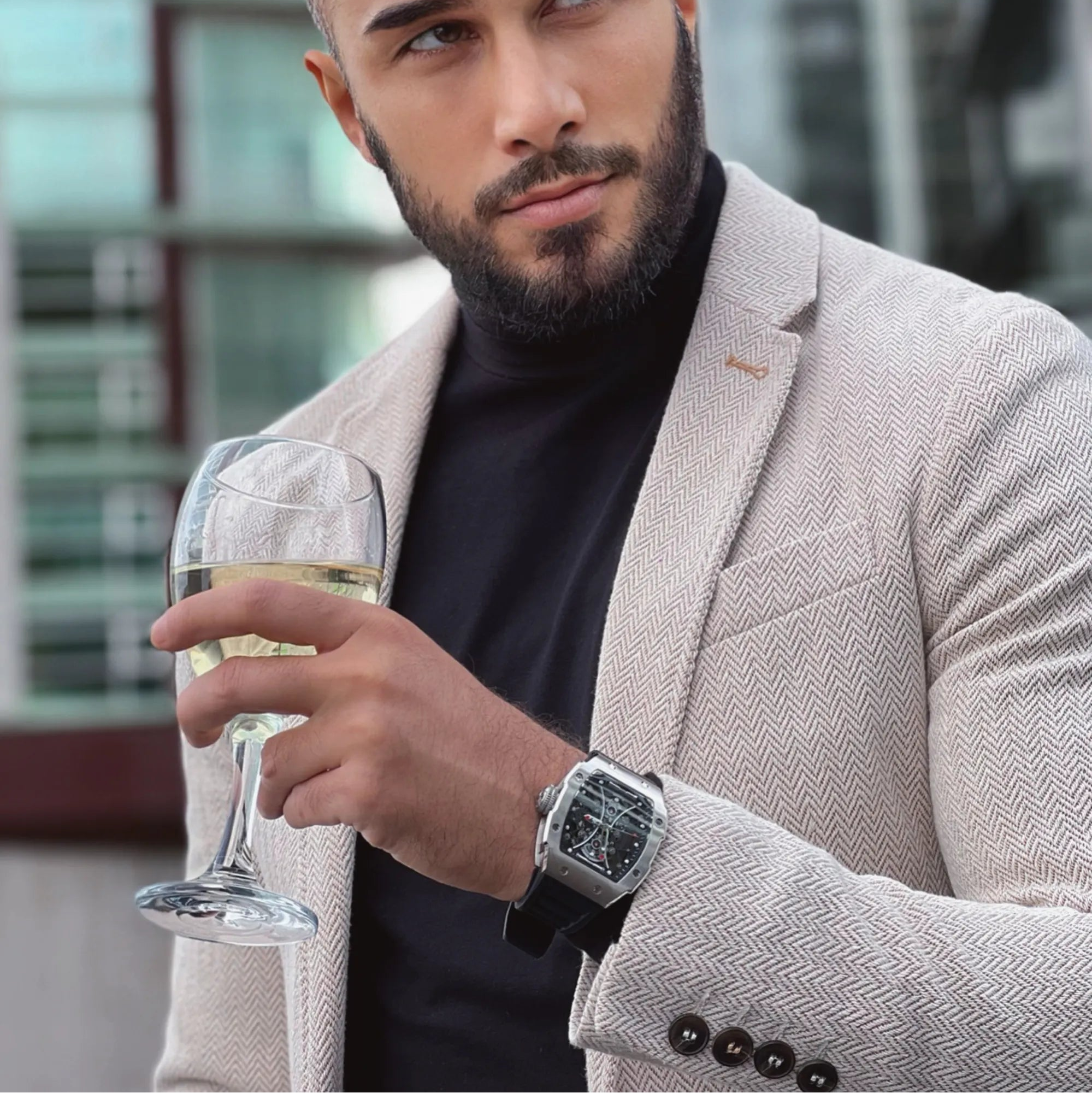 The Skeleton Hourglass Watch captures the fleeting beauty of time with a design inspired by the ancient hourglass. Its openworked dial reveals a hollowed center where the hour, minute, and second hands intersect—symbolizing the moment sand passes from past to future. Just like the hourglass, this timepiece reminds us that every second matters and encourages us to live deliberately in the present.
